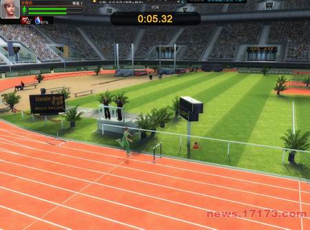 田径分为四项运动,分别是100米跑、110米栏、跳远、三级跳,不得不说这个项目有键盘杀手的意思,进入比赛会随机指定按键,要在加速过程中不断按键以加快速度,110米栏要在适当的时机按键跨栏,而跳远和三级跳则需要在起跳时调整角度和方向,需要很好的判断哦,同样吸引人,不过三级跳我经常失败~~反应不够吧。
