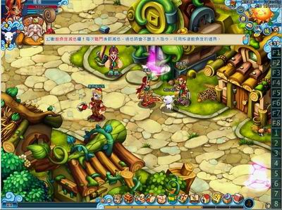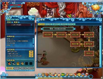 花果山是玩家接触的第一个西游世界,一开始最好的方式就是接任务升级。建议先在花果村接取任务内容,看到头上有发亮卷轴的 NPC,上前与他交谈即可接下任务。玩家也可以打开任务日誌,点按 icon 按钮弹开任务一览介面,将滑鼠游标移至任务上就会显示接此任务需具备的等级限制、起始场景和人物;另外,只要按下任务介面中的「移动」钮,玩家角色就会自动前往任务需求的下一个地方喔。