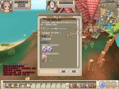 作任务很简单 为着广大MM考虑,游戏中的任务系统设置中规中矩,进入到新手村后,NPC就为玩家提供一些简易的任务,让玩家熟悉各种操作。之后的任务,大多是根据玩家的级别而定,升到一定级别后,就可以开启新任务,找到头顶上有任务标记的NPC,就可以接受新任务了。任务给予玩家的奖励十分丰厚,不仅有大量的经验和金钱,还有职业装备、精灵家具等。在玩家杀怪的过程中,可以随机得到一些碎片、原材料、装备等。只要按NPC所示,依顺序完成任务,升级转职完全是易事一件。
