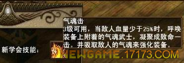 在玩家升级到3级时会学会新技能“暴魂击”并接到任务“聚魂成器”,任务要求玩家使用暴魂击打败6只“贪吃的小鬼。