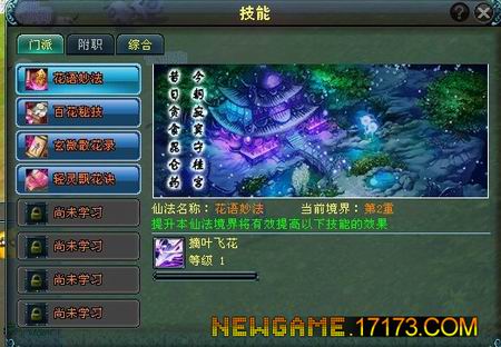 综合技能:分为通用技能,生活技能,帮派技能,夫妻技能,后2样暂时没体验到,通用技能主要是完成交易等社交的技能,生活技能就是烹饪,做药等生活技巧。