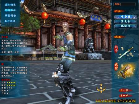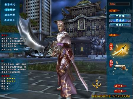 游戏目前分为,中华楼,黑龙会,地狱门,3大门派,其中中华楼可选剑,腿,黑龙会可选刀,枪,地狱门可选爪,法。