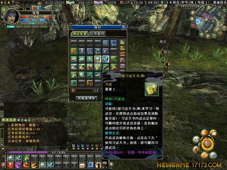 任务,自动寻路游戏中做的比较完善,用起来算比较贴心吧,缺点就是,游戏的任务相对比较无聊,就是猛点对话,杀杀怪,采采药,拿奖励。