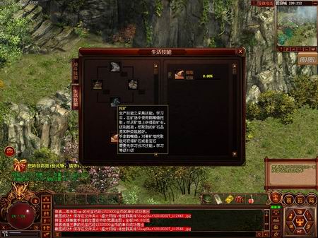 1:技能系统,目前游戏中分为二大技能系统,战斗技能和生活技能,生活技能分为:制炼、挖矿、拆卸、铸造、伐木、猎取。
