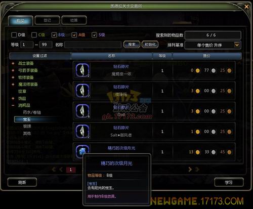 装备的获得除了制作与副本打出之外也可以通过交易所,也就是拍卖行购买。B级属于绑定的装备,不能进行交易。所以一般交易所里都是些C级装备以及材料等东西。
