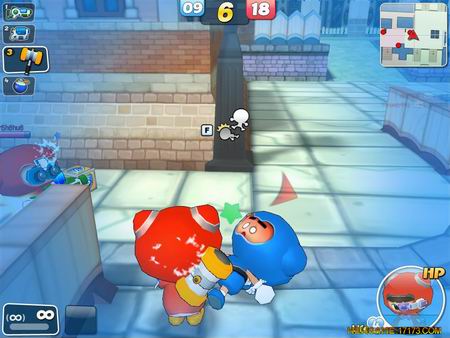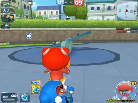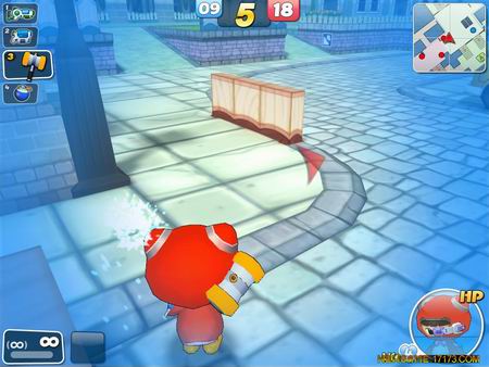 道具战:把对手打成泡泡踩爆后就会获得道具,道具有无敌,变色,变巨大,变小,快速移动,香蕉皮等等。
