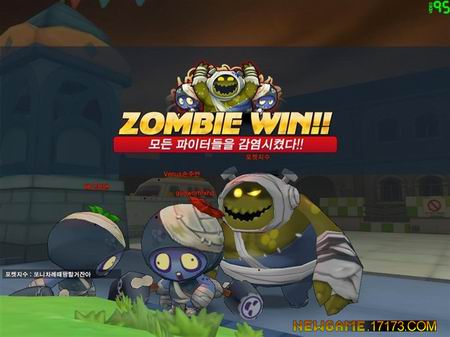 僵尸战: 和CSOL里的僵尸不同 这个游戏还是走搞笑路线的 僵尸拥有强大的移动和跳跃 抓到普通的玩家4-5下就会让他变成 小僵尸了 在4分钟的游戏时间内如果有玩家没死亡 则人类胜利 如果都变了 那就是僵尸胜利
