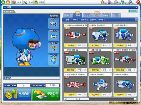 作为一个TPS射击游戏,游戏武器肯定很重要了,目前游戏中主要有5种武器:狙击 冲锋枪 散弹 手枪 小锤子,手雷,每个种类又有不同的分支,你可以根据自己的喜好购买对应的水枪。