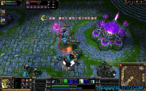界面操作:7.5 游戏在操作上没什么好说的,一鼠走天下,在界面方面色彩丰富,但不够清晰,遭人群欧时非常乱,很多提示看不清楚,而且游戏好像是“故意”把地图放在右下角,来彰显和DOTA的区别,这对笔者这样的DOTA玩家来说是非常不适。