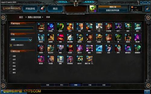 目前游戏有40左右个英雄,各有各的特色和玩法,这是整个游戏最大的亮点。LOL英雄大致分类:战士、TANK、法师、刺客(GANK)、辅助,与DOTA不同,在DOTA里一直有很明显的前、中、后期的区别,但在LOL中不是很明显,只要你意识好,操作强,时时刻刻都是后期,你水平烂的话可能永远是前期。