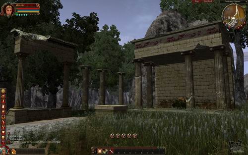 到处都能看到希腊风格建筑的残垣断壁,风吹过的时候草丛的动态效果表现很不错。