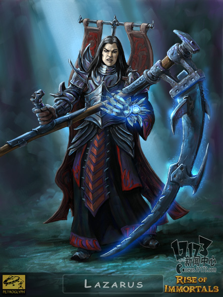 背景故事:由于是上古之神部族长老的私生子,拉扎拉斯成为了部族的弃儿。随着时间的过去,被迫生存在社会边缘的他内心日益陷入黑暗之中,并发誓一定要向拒绝他的父母和部族报仇。