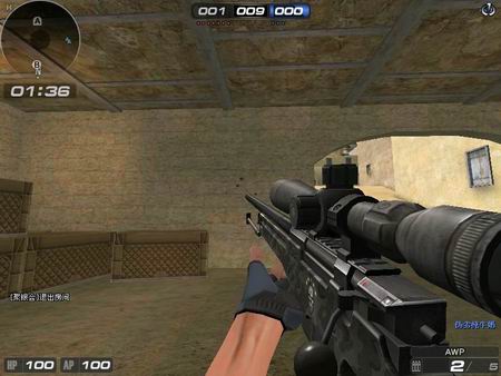 AWP,拥有5发子弹的弹夹,移动速度较慢,打身体一枪可以消灭敌人。在不开镜的情况下,弹道偏移不是很厉害,可以盲狙。