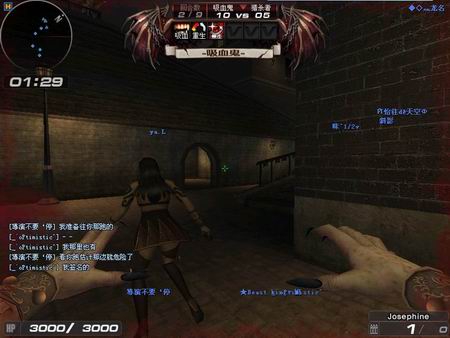 吸血鬼模式,和CF生化模式相似,但是做了些修改,在游戏开始后10秒出现吸血鬼,佣兵方只要被吸血鬼抓到就会变成吸血鬼,吸血鬼杀害佣兵以后会激活被技能吸血,吸取佣兵的生命值。每当佣兵方有人变成吸血鬼,佣兵方得攻击力就会提升10%,当攻击力提升到100%时,佣兵方可以进化成狼人,和吸血鬼厮杀。吸血鬼和生化你的生化人一样可以施放加速技能。吸血鬼的皮可没有生化人那么厚,很容易就会挂掉。最多支持人数8V8。