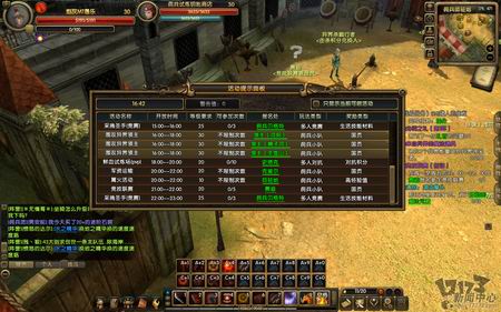 游戏中活动有:采摘圣手、军资运输、篝火活动、围攻异界领主等。活动中有较多的趣味活动,如:采摘圣手,玩家在比赛采集,采集时有进度条,要掌握恰好的时机,完美采集分数最高、优秀其次等,比赛结束后分数越高经验越多。