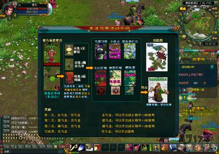 游戏中有无双赛马、老本运货、秘境抢宝、神鱼等活动,如无双赛马,报名后进入活动地图等待活动,开始后需采集活动所需物品,采集完成后到终点处领取奖励,前三名奖励更加丰厚。