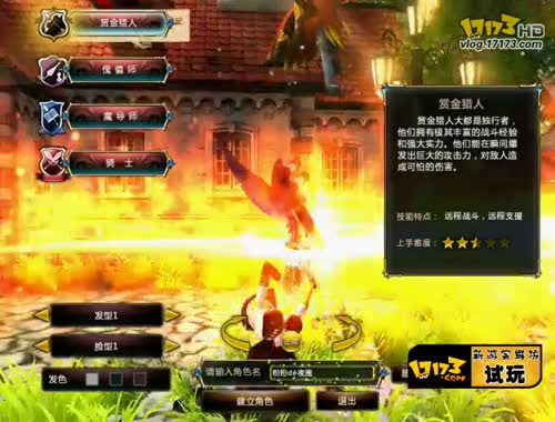 四大职业可以选择,其中傀儡师和赏金猎人是MM角色。其余是男性角色。