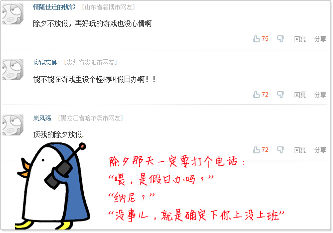 第1页:评论:能不能在游戏里设个怪物叫假日办!