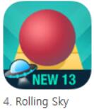 《滚动的天空》是一款快节奏的休闲游戏,玩家要操作一个滚球在充满障碍和陷阱的平台上往前滚动。小半年了几乎没有一期它不在榜单上的。