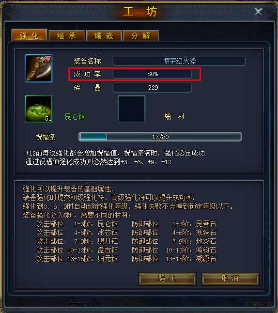 4.强化时可以加入辅材,辅材可以提高强化成功的几率。