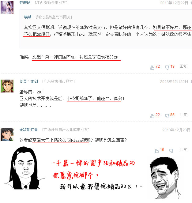 “比起千篇一律的国产3D,我宁愿玩精品2D”