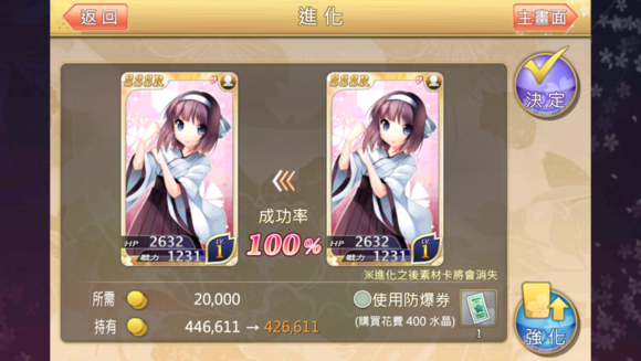 R卡或更高阶的卡每次的强化费也会提高,但经验值得转移率不会高