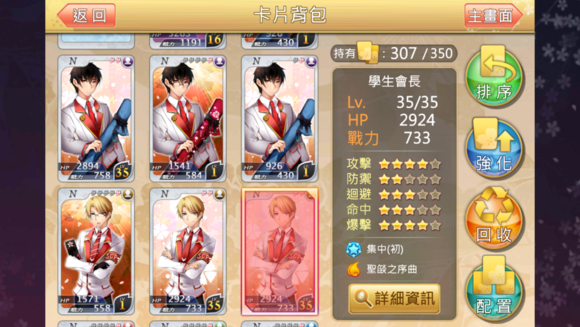A:可藉由将游戏或转蛋中的卡片回收进而取得或关卡奖励,而纹章分为以下四种: