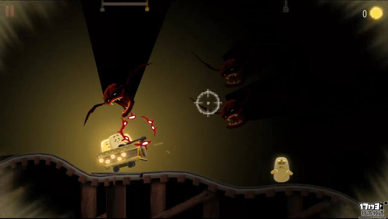 在本作中游戏的玩法不再是无尽的挑战,而是以一个个的评级关卡划分,在每个关卡中我们的小布丁都将不断的向矿井深处进发,面对隐藏在黑暗中的一个个敌人你需要使用枪械点击怪物来袭的方向将其射杀,不过需要注意的是在阴影之下可不仅仅只有敌人,还有许多的小布丁等待着我们的救援,若是不小心将其射杀我们车上的小布丁也会受到影响,因恐惧环境而导致的畏惧感以及射杀同伴的愧疚感甚至会让这些小布丁自杀。