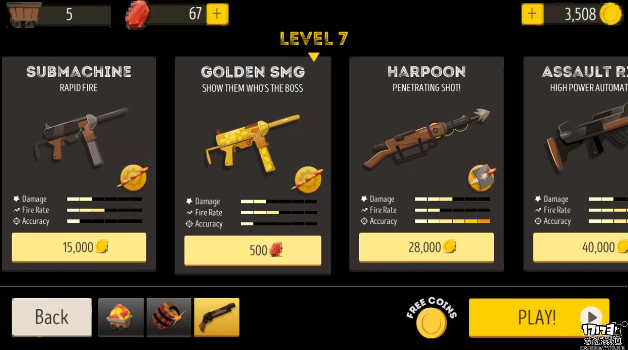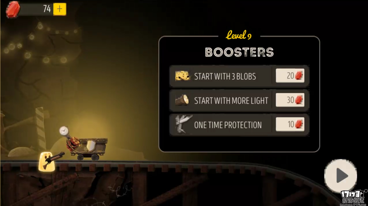 在游戏中同样设计有简单的武器系统,玩家通过关卡之中刷取的金币即可进行购买。不过想要顺利通关可不是仅凭武器的威力即可达成的,在游戏开始前玩家还能够购买起始条件,3个小布丁开局、更多的光亮以及多一次的保护,并且还有各种道具可供购买,如此设定虽然能够让玩家走的更加顺利,不过需要花费钻石就看大家自己选择啦。