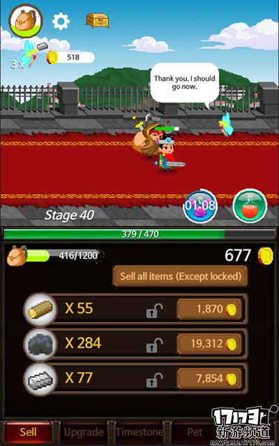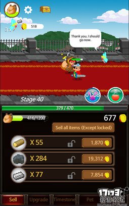 手游《骑士助理《ExtremeJobs Knight's Assistant)》初看之下十分粗糙,但是人物的造型相当的Q萌,我们的主角背着一个大包不仅装着骑士的武器还要装下沿途捡到的各种破烂,而游戏中那个一脸欠抽的骑士却是轻装上阵,甚至连药水都要我们亲自喂到他嘴里,有时候想着不如就这样让骑士死掉吧,反正我们做小弟的看到情况不对立马逃,完全没有心理负担。