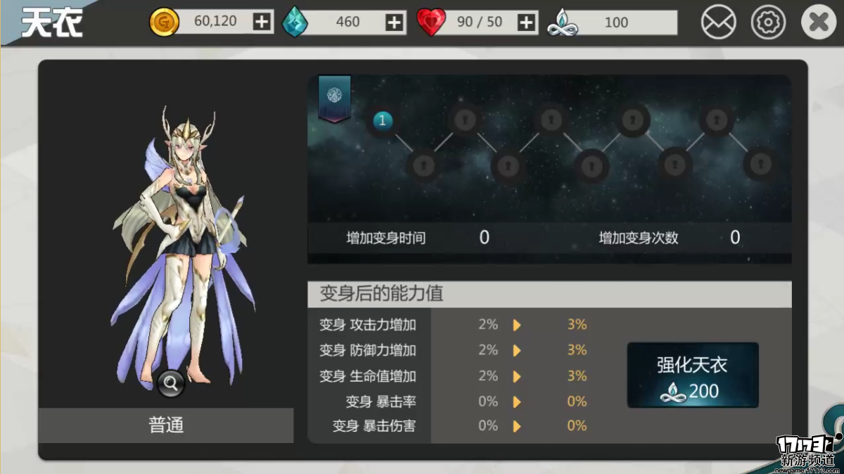 至于游戏中的天衣系统同样有一套独立的养成系统,实际上给人的感觉更像是天赋或是星座一般的设定,只需要凑齐足够的材料即可升级。