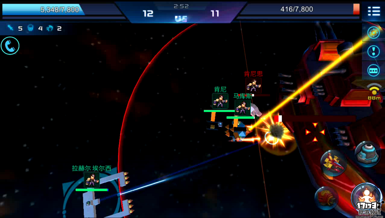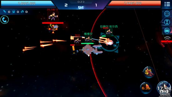 多人实时对战作为本作战斗部分核心的玩法,战斗的模式均是采用了MOBA式的推主基地玩法,只不过游戏的战斗较为简单粗暴,只要击毁敌方的母舰即可赢取胜利。没有任何的阻挡,战舰之间直接开战,虽然战舰能够无限复活,并且每次复活还能够更换不同的战舰,但是复活的时间将会随着死亡次数而增长,所以击杀数越多的队伍更加具有获得的优势,但是由于战场设计较为宽大,通过绕开正面战场直接强攻对方母舰也是不错的战斗策略。