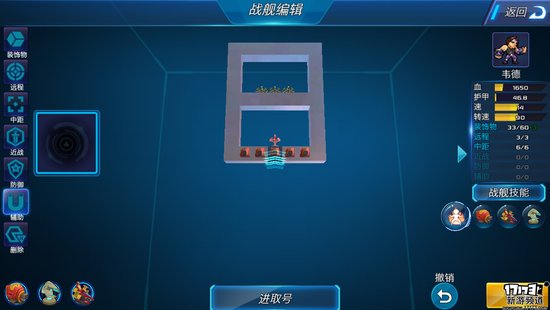 除了基本的造型设计外,战舰的主要玩法还是各种武器系统的装载,远距离、中程到近战三种类型不同的武器在布置上只需要遵循正前方不被遮挡的规则即可在当前等级限制数量内随意布置。但是由于玩家的战舰造型各不相同,并且在战斗过程中战舰的炮口旋转有着一定的扭矩,武器布置的位置还是会影响到玩家的输出模式,如最基础的机枪炮台在设置上若采用较为集中的布置,则能够对单点进行较为集中的输出,而较为分散的设定则能够对大范围的敌人进行攻击。可以说战舰的造型以及武器的布置都相当的影响游戏的战斗。