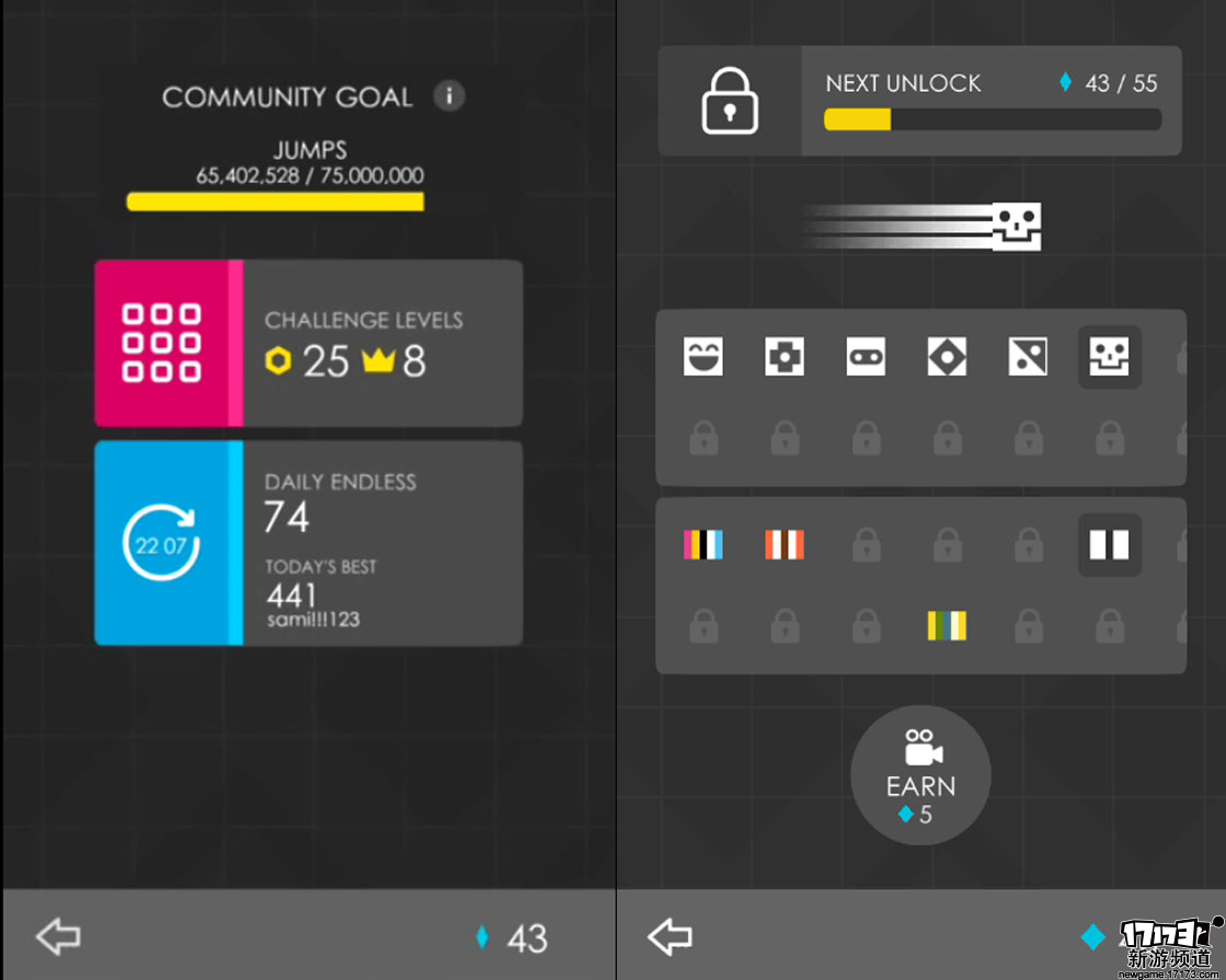 手游《再跳一次(one more jump)》玩法相当简单,玩家能够轻松的上手,但是在游戏的游玩过程中容易让人陷入注意力高度集中的状态,若是在走路的时候游玩本作可要小心别撞到前方的妹纸了。总的来说,本作上手容易,耐玩性强,并且在消费方面也相当的良心,感兴趣的玩家不妨下载本作存在手机中在闲暇之余玩上一局吧。