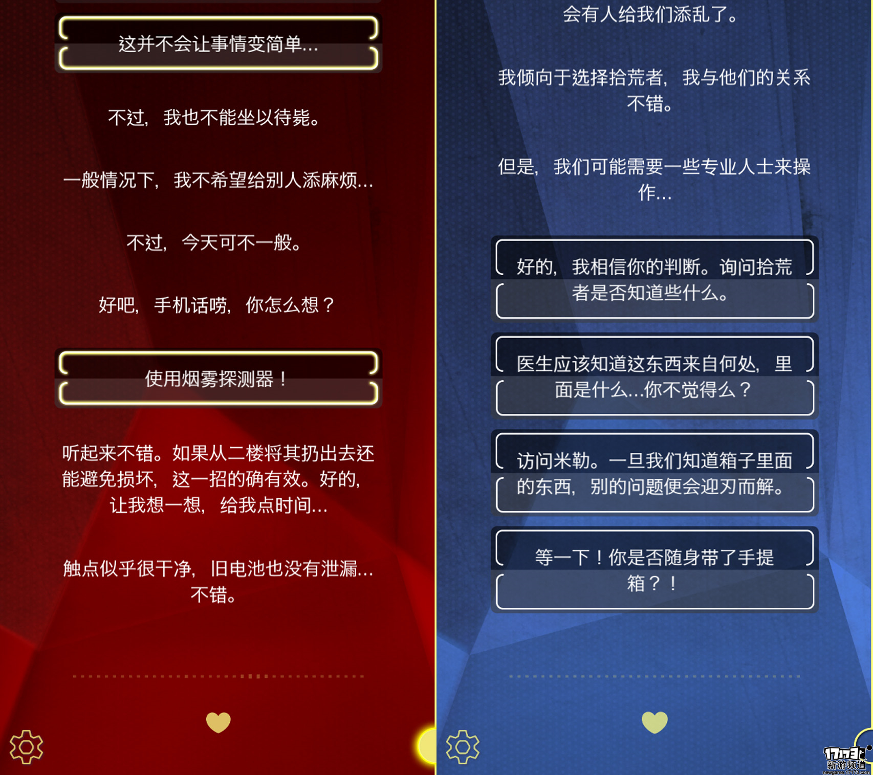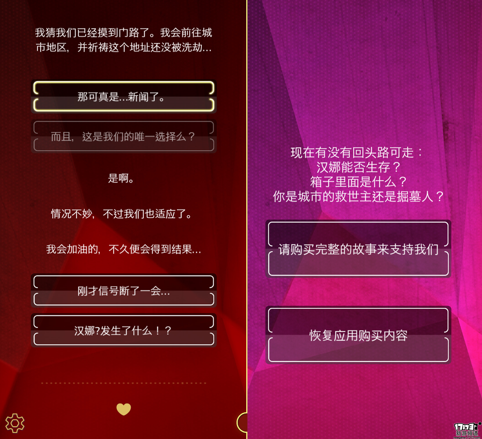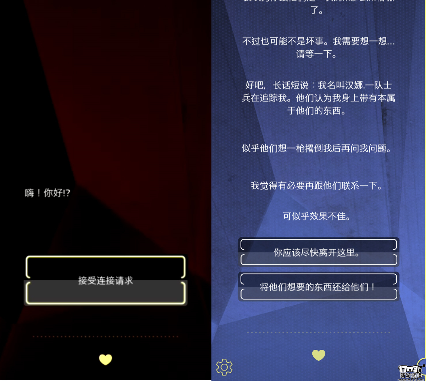 并且游戏在主角的设计上也相当的具有真实感,开启推送功能后不停的推送信息显得她是真实存在的。并且游戏还将汉娜的脉搏以心跳的方式呈现在游戏的主画面之中,游戏对话窗口的颜色将会随着汉娜的心跳而改变,稳定的时候呈现理智的蓝色,而在遇到战斗或受伤感到紧张的时候则会变为深色,这也让游戏变得更加具有代入感。虽然游戏在进行的过程中有需要玩家等待的时间,但是游戏同样提供了快速推进剧情的选项,性急的玩家不妨就开启该功能一次性将游戏通关吧。