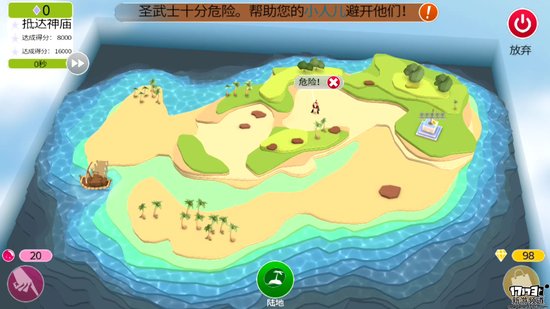 游戏中的出海探索玩法就如同一个个副本的设定,只不过玩家所要做的是指引你的人民前往每个岛屿的神庙,通过塑造大地来让人民绕过各种敌人的攻击并在最短时间内到达神庙。一个个关卡的挑战不仅趣味性十足,也让游戏在经营养成上变得更加耐玩。