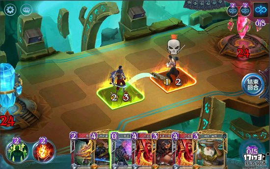 英雄加随从的战斗玩法是游戏的特色之一,英雄单位可以说是游戏的核心单位,普通的随从在游戏中自然是固定的能力数值,而英雄单位却是大大的不同,当英雄每一次进场并且阵亡后都会提升等级增加费用以及生命攻击属性并且重新回到你的牌库中,只要玩家在游戏前期通过一些抽牌手段来反复召唤英雄参战,那么到了战斗后期你的英雄分分钟都能够超神给你看。