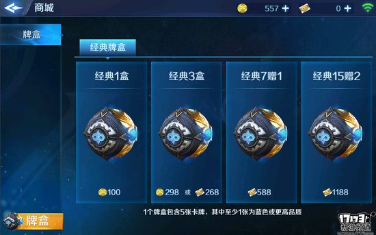 手游《英雄战歌》在主要的消费模式上自然还是采用了抽卡的形式,也就意味着玩家若想要凑齐一套或者多套卡牌,首先必须在游戏的卡牌池中进行多次的抽取行为,每个牌盒5张卡牌并且保底一张蓝卡以及一定几率出橙卡。可以说游戏基本上属于想要收集齐卡牌只有不停的对战或者直接进行氪金活动。