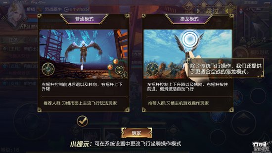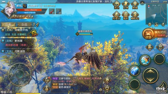 本作采用了虚拟摇杆搭配虚拟按键的经典ARPG设计,对于熟悉该类操作的玩家应当能够轻松上手,不过游戏除了正常的操作模式外,还加入了两种不同模式的飞行操作玩法,以虚拟摇杆控制摆头和上下,技能按键中控制飞行的猎龙操作模式,还有直接摇杆控制方向而在右侧进行升降的操作,总的来说游戏以无缝地图搭配自由骑龙飞行的体验使得游戏在自由度上的表现相当出彩。