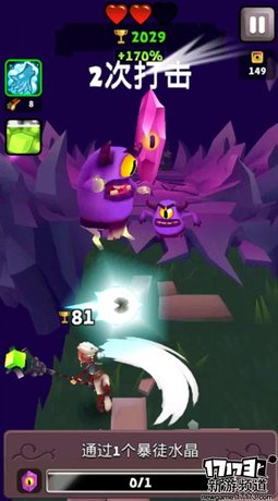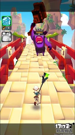游戏在玩法上基本围绕着跑酷砍怪而展开,在屏幕下方会不断刷新不同的任务供玩家完成,不过任务数量仅限于当前等级,当全部完成时玩家即可达到下一等级,不过升级可是要等跑酷结束。在没有任务引导的情况下,玩家依旧能够不断的向前跑,沿途还有着谜一般的传送门,进入另一个时空来完成挑战任务获取宝箱,或是继续向前打破狂暴水晶来提升游戏难度。