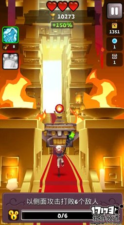 在玩家不断向前的同时,游戏中的怪物种类也在不断的增加。地面的怪物、飞行怪、有着护盾能够远程攻击的法师怪甚至于拿着大锤子能够秒杀玩家的如同BOSS一般的怪物。游戏中的怪物种类之多,每一种都需要玩家通过不同的操作来进行击杀,当怪物数量越来越多时,玩家甚至需要通过连续击杀操作,在地面及空中不断的连斩来获取高额的积分并顺利过关。