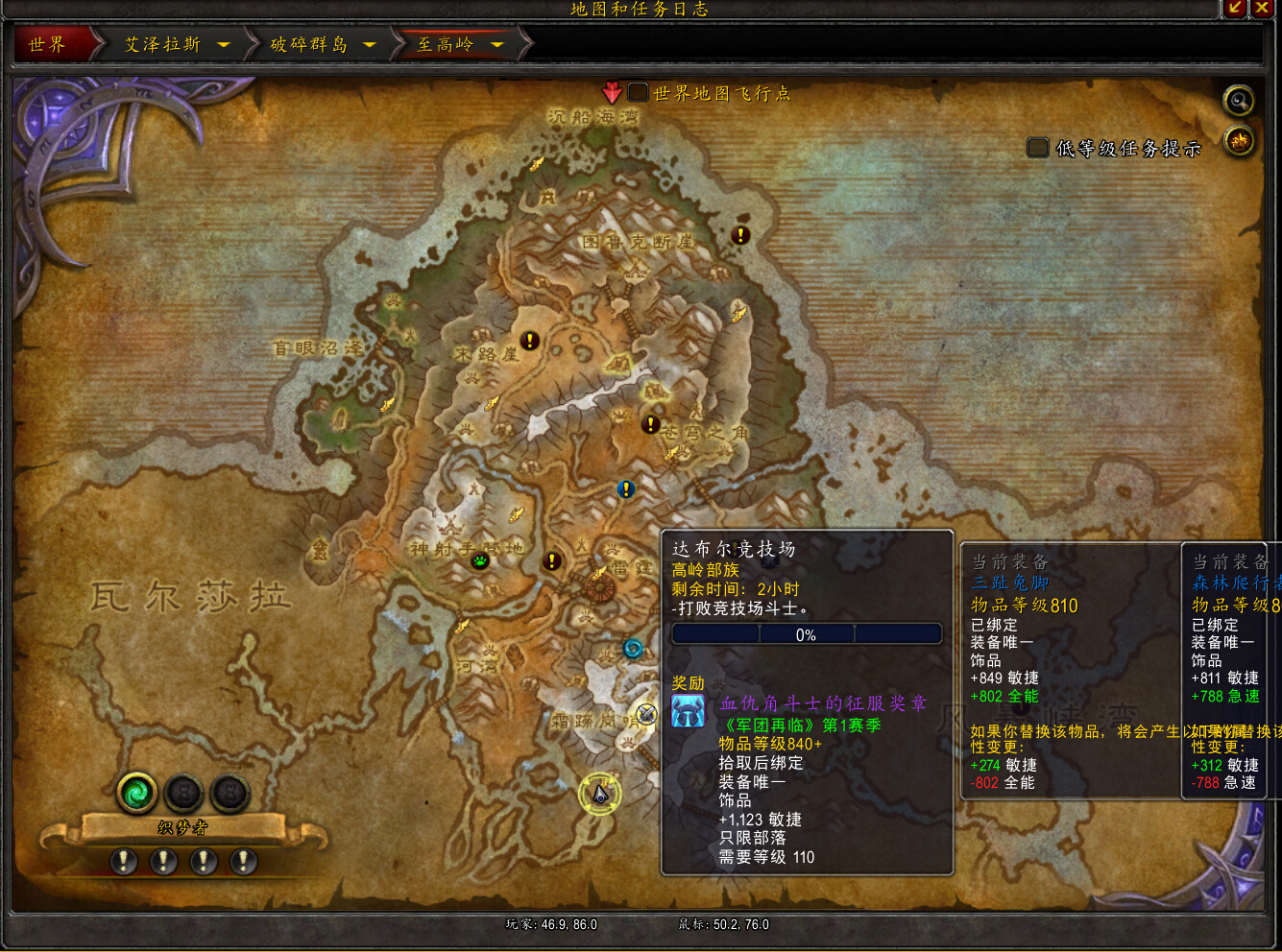本次更新另外一个看点就是破碎海滩场景战役和军团入侵的世界事件。前者算是剧情演出,送几件685的装备,看看伤感的剧情。而军团入侵的世界事件则比较有意思,这是一个类似激战2地图事件的模式。在地图上每隔一段时间会刷出军团入侵的地点,到达相应的区域后,按照任务指示扫清燃烧军团的敌人,该地图位面的所有参与玩家共享进度(部落和联盟也共享)。最后当达成前三步任务后,会出现一个boss,打掉之后每个参与玩家都会获得一个箱子,里面可以开出虚空碎片(用来换装备)和700装等的装备。