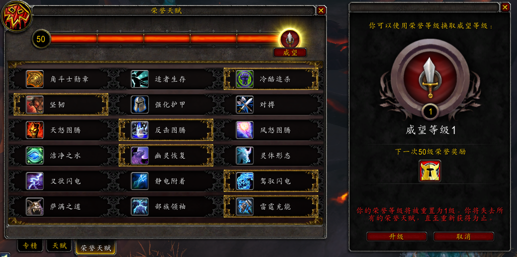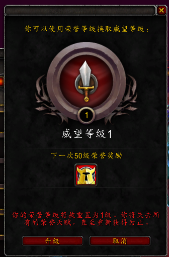 玩过《暗黑破坏神3》的玩家都应该知道,在《暗黑3》中,当角色满级时会有一个巅峰等级在玩家继续获取经验时为玩家增加些许的属性。而如今这个巅峰威望等级成为了《魔兽世界》PVP玩法中的一个组成部分,但是其功能却并非属性加成,而是以更加极端的方式展现。当玩家的荣誉天赋达到50级满级时即可使用荣誉等级换取威望等级,也就是说将你当前的荣誉等级重置为1级以继续获取荣誉,但是这也意味着你需要重新开始刷荣誉天赋等级,就为了那些外观、宠物、坐骑等,如此设定对于以PVP作为休闲玩法的玩家来说或许没有影响,但是对于专精PVP的玩家来说该设定无疑相当的坑爹,当一名玩家在冲击竞技场天梯排名时,他基本上需要保持荣誉天赋满级的状态来进行冲级,这样将会损失大量的荣誉经验。同样的若是放弃荣誉天赋来提升威望等级,那么该玩家在PVP战斗中的实力将会大大的弱于其他玩家,如此矛盾的抉择只会让玩家对游戏的PVP萌生退意。